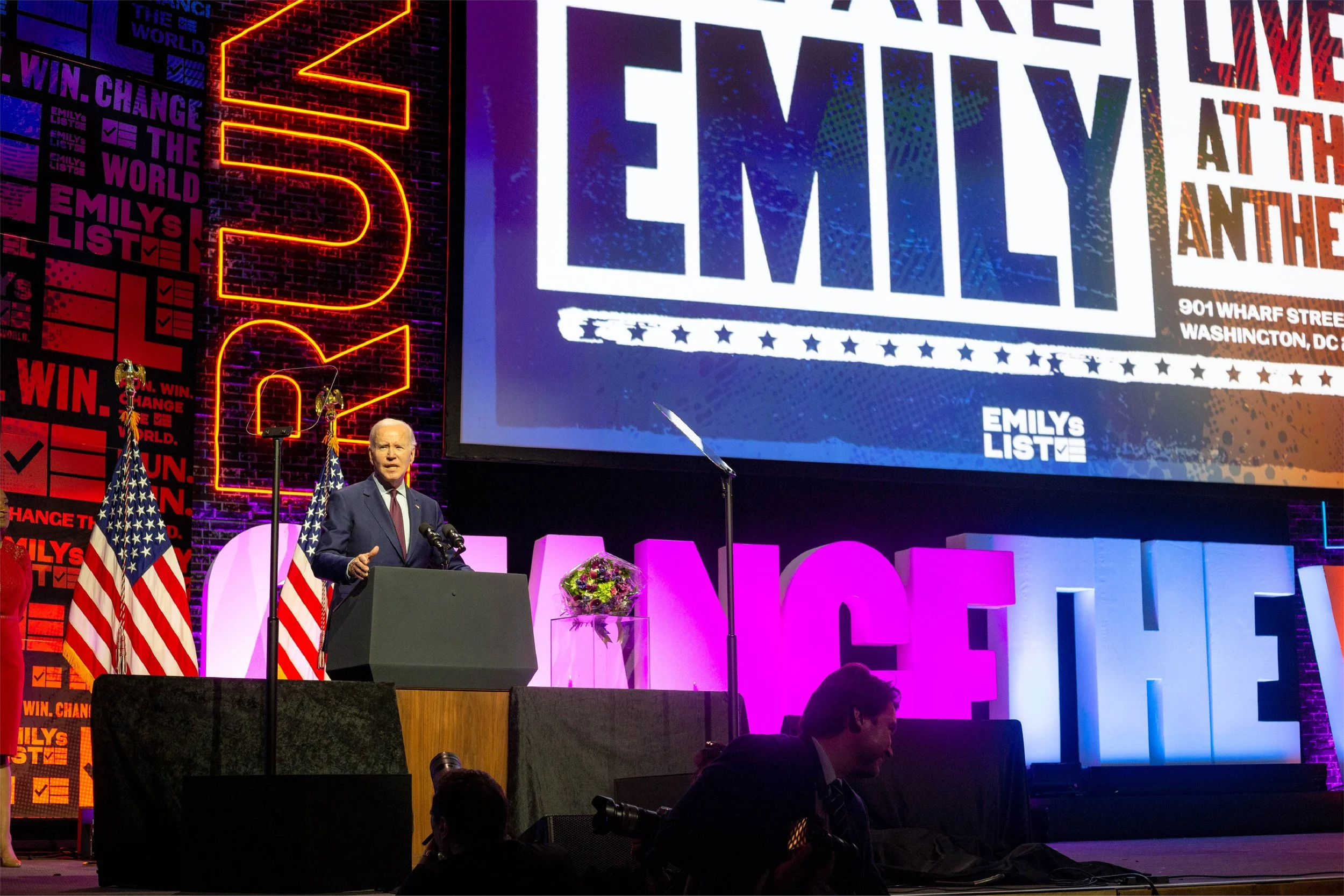 The vision for 2023 was to lean into the The Anthem’s reputation as a concert venue and transform the space into a sold-out show, while also paying homage to Washington DC as the birthplace of GO-GO music. Through bold colors, type, and texture, attendees were transported to an era of rockstars and guitar solos. At the same time, the space needed to feel suitable to host a number of important speakers, including President Biden, Vice President Harris, and former Speaker of the House Pelosi. In the end we found balance in contrasting our typical professional brand standards with a new, punk edge, coming together in an event wholly it’s own.